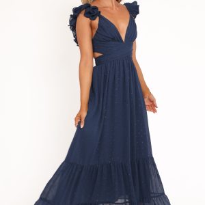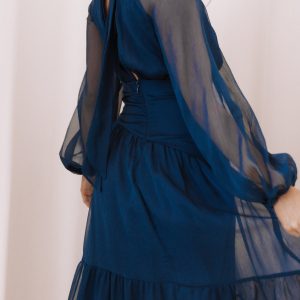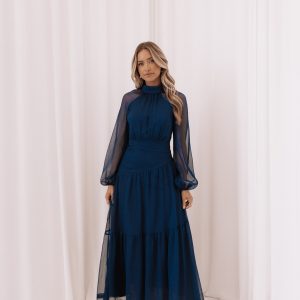 Julip Sheer Long Sleeve Maxi Dress – Navy (复制)