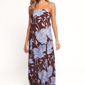 Ottavia Strapless Maxi Dress – Blue Poppies