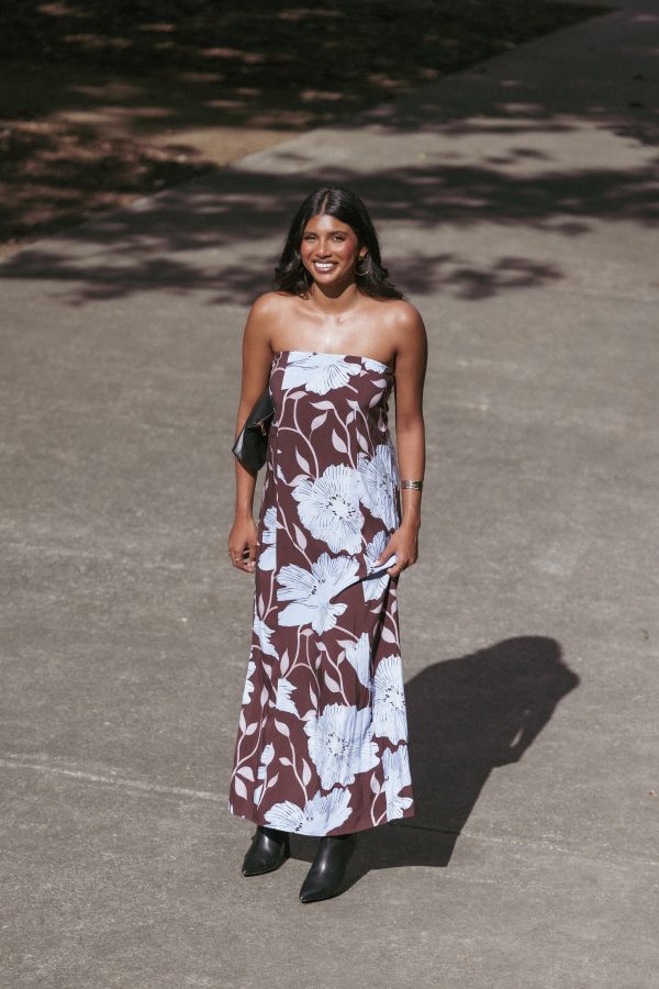 Ottavia Strapless Maxi Dress – Blue Poppies (复制)