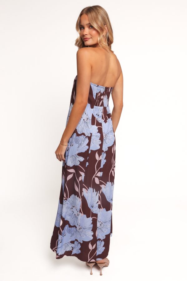 Ottavia Strapless Maxi Dress – Blue Poppies